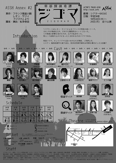 劇団ASSHの新シリーズ「ASSH Annex」の第2弾舞台「帝都探偵奇譚 ジゴマ」が2018年10月24日(水)から29日(月)まで、東京・池袋のシアターKASSAIにて上演される。