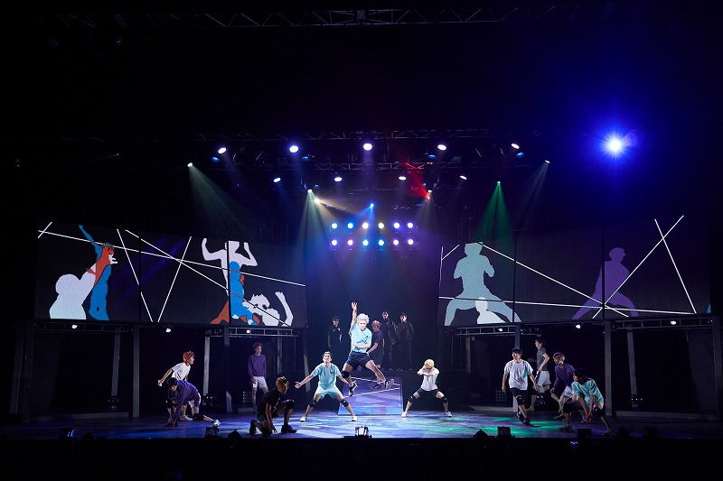 その後の公開ゲネプロでは、ウォーリーが「美術や振付、映像は刷新し、音楽も全曲新曲です」と話したように、LEDパネルがインパクト大のセットをはじめ、映像、音楽、ダンスと、まさに「新生」といった演劇「ハイキュー!!」を披露。