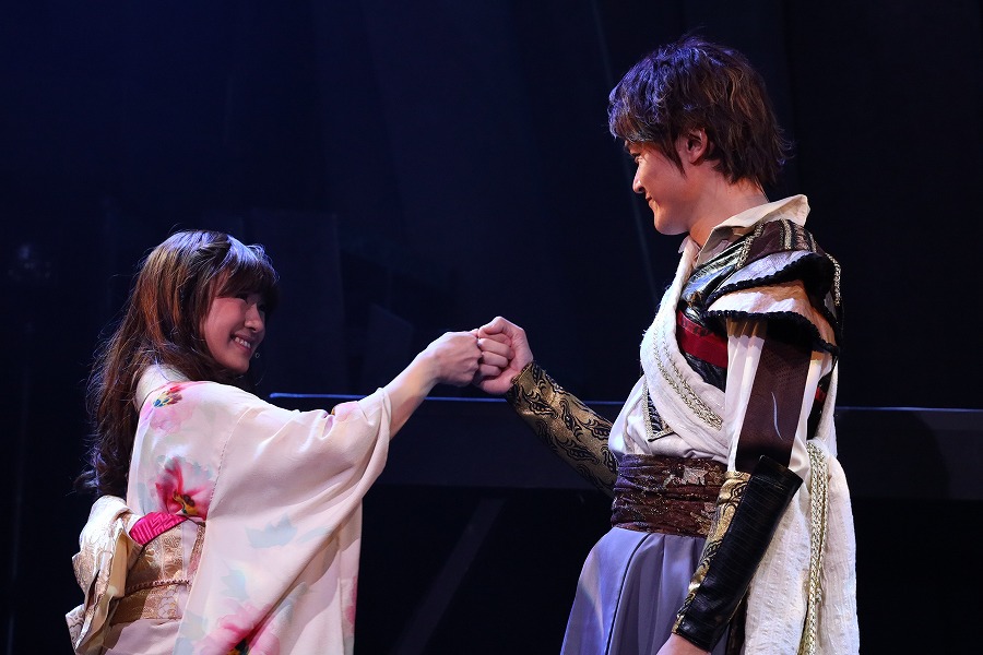 ゲネプロ前の囲み取材で、橘龍丸(上杉謙信役)は、「前回の信長編もそうですが、ルートが分かれると、殺陣やお話、結末もすべて違いまので、色々な味を楽しんでいただけるかなと思っています」と声を弾ませた。早乃香織(水崎舞役)は、「今回は信長編以上に、2つのルートの違いがはっきり分かれています。両方、謙信様を救いたいのですが、幸福ルートはみんなと一緒に力を合わせて謙信様を救おうというところがあります」と紹介。橘龍丸は「キャスト一丸となってこの作品を作ってまいりました。情熱ルート、幸福ルート共に楽しんで頂ければありがたいと思っています」とメッセージを送った。