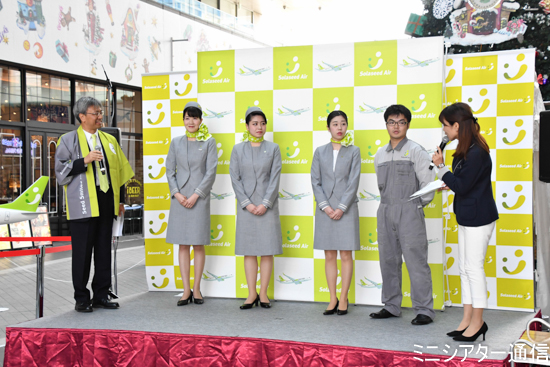 11日の11時にスタートした同イベント。開会式では、主催者から開催趣旨が説明された。さらにソラシドエアの現役CAと整備士が制服姿で登壇。入社1年目のCAの女性は九州出身だそうで、「九州の言葉を聞くことができるのが嬉しいです」と、CAとして働く喜びを言葉にした。