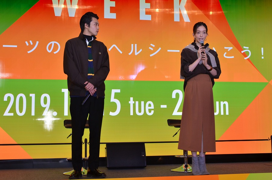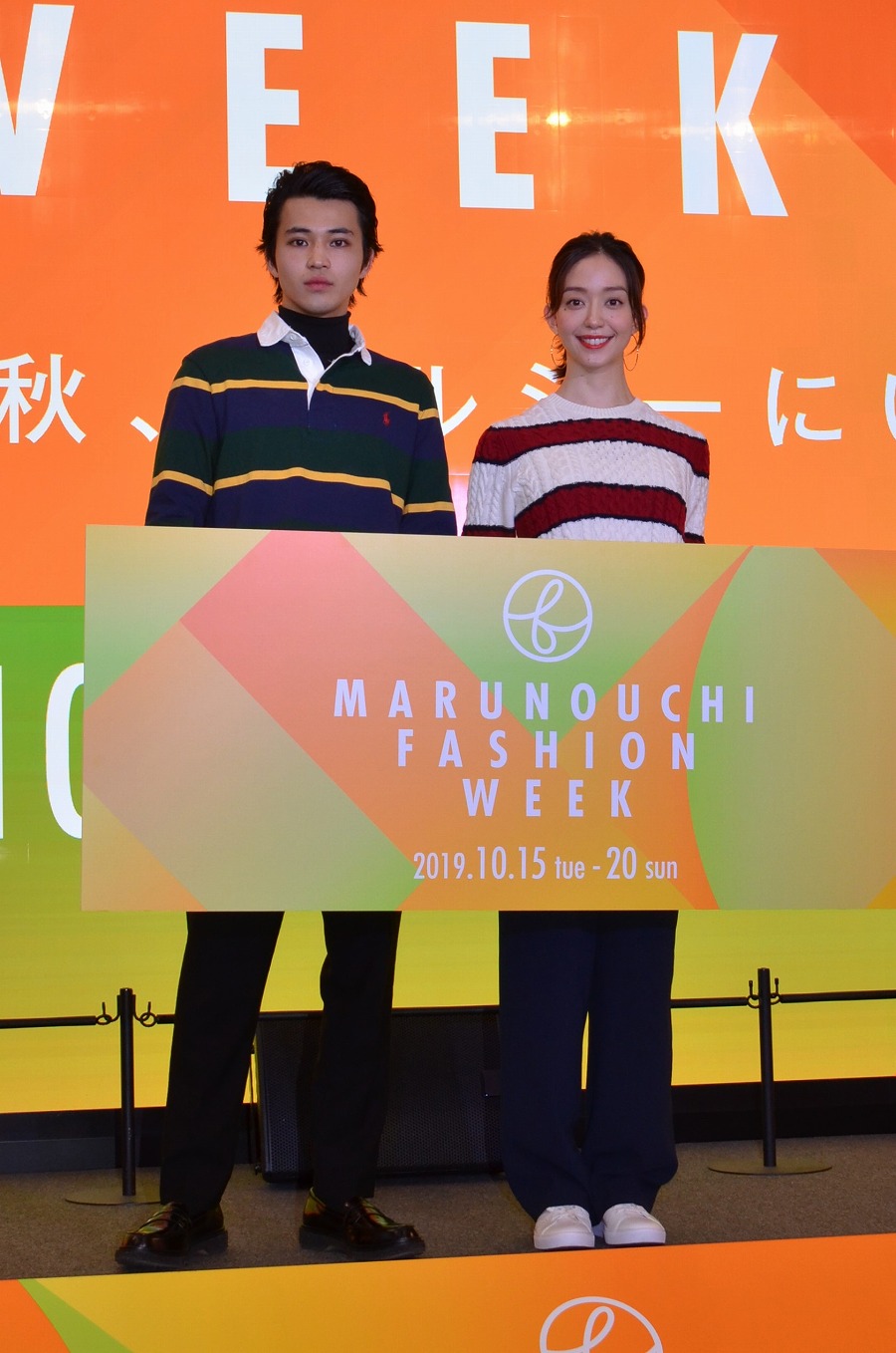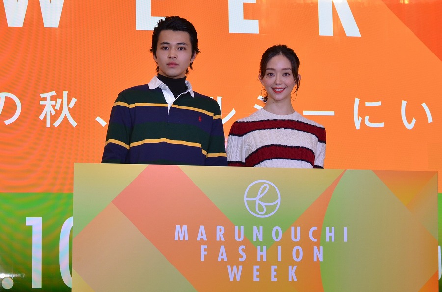 モデルの松島花、中田圭祐が2019年10月15日、都内で開催された「MARUNOUCHI FASHION WEEK 2019」オープニングイベントに出席した。