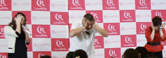 有名若手女優T・Tなどのケアも行なっている「美容矯正のゴッドハンド」清水六観氏が、東京・港区のソフトバンク本社で無料美容アプリ「LunaRitta(ルナリッタ.)」のビューティイベントに参加。100人の参加者の中から希望者3名をステージに上げ、十八番の「小顔矯正」施術を公開で行った。