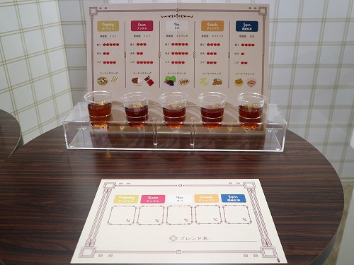 この日、体験会で用意されたのは5種類の茶葉。それぞれの特徴とブレンドの基本的な流れを頭に入れた上で、ブレンドする茶葉の配分を決定し、出来上がったブレンドティーを手渡された。一番良いブレンドの仕方について、ティーテイスターに質問すると「その日の気分や体調に合ったものでブレンドするのが一番。例えばリラックスしたいのであれば、フルーティな香りのするダージリンとコクのあるアッサムを混ぜたり、あるいはミントなどのハーブティと紅茶を混ぜてみたり……」とのこと。もっと気軽に日常の中でお茶をブレンドするという習慣があっていいのかもしれない。