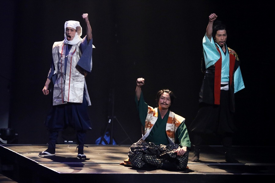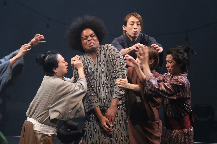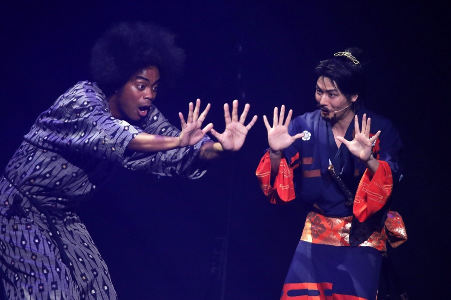 もはや“なんでもあり”のステージで笑いつかれていると、副島が織田信長についた黒人家臣、弥助を演じ、まさかの感動を生むシーンも。
