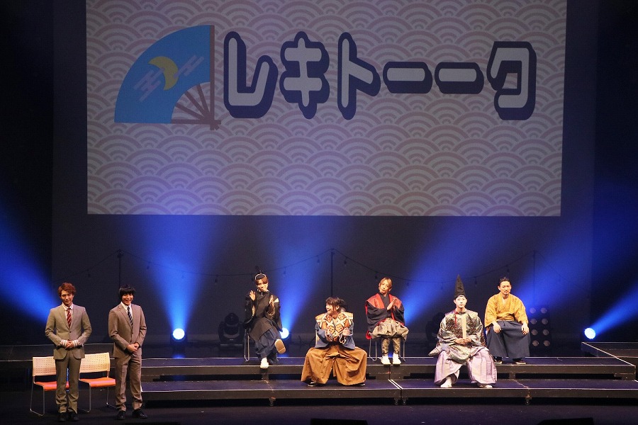 出演したのは石井智也、井深克彦、太田将熙、奥谷知弘、株元英彰、久保田秀敏、陳内将、杉江大志、副島淳、釣本南、前山剛久、溝口琢矢、八神蓮という舞台で活躍する若手実力派俳優たち。さらにMCには、はんにゃの金田哲と長谷川ヨシテル、そして歴史ラップを歌うCo.慶応が登場した。