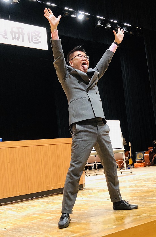 TBSラジオ『おはようヒロシ体操』を実演しながら、交通安全について講演した生島ヒロシ