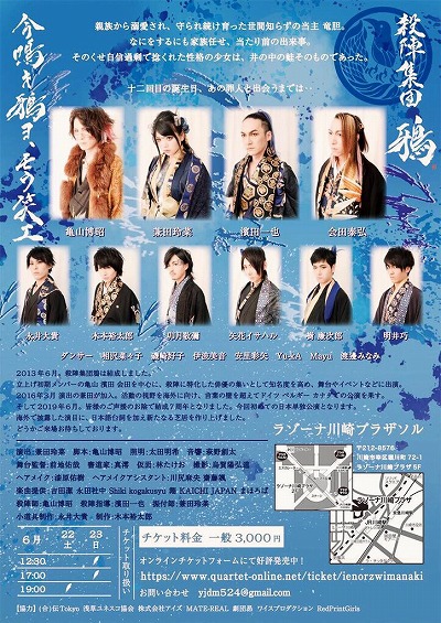 舞台『今鳴キ鴉ヨモウ笑エ』が2019年6月22日、23日に、ラゾーナ川崎プラザソルにて上演される。